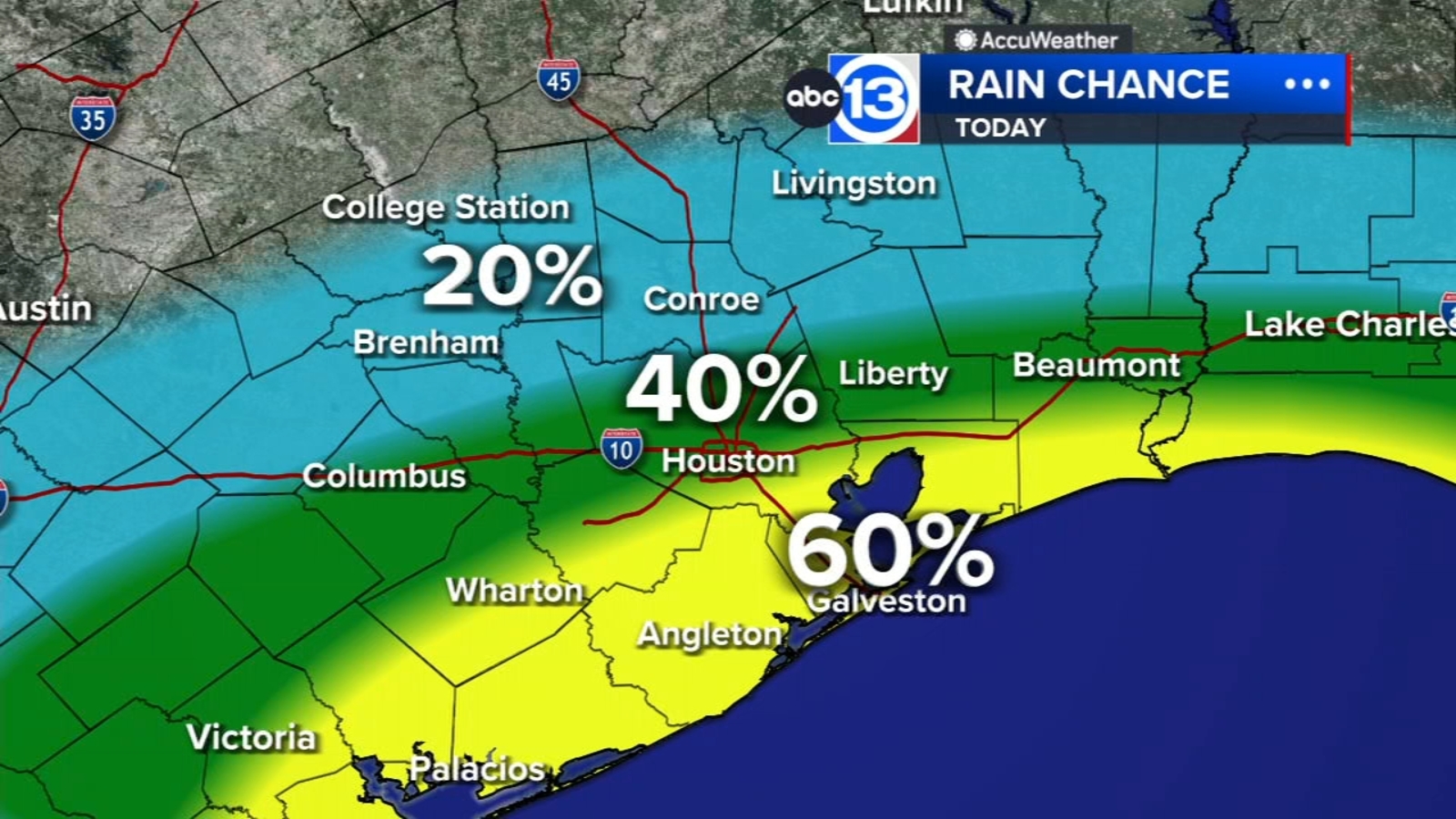 HOUSTON, Texas (KTRK) — As millions remain without power in Houston and Southeast Texas, the Heat Advisory has been extended through at least Thursday evening with the hot, humid conditions continuing. Thankfully, cooling showers and storms will occur more frequently Thursday through Saturday.