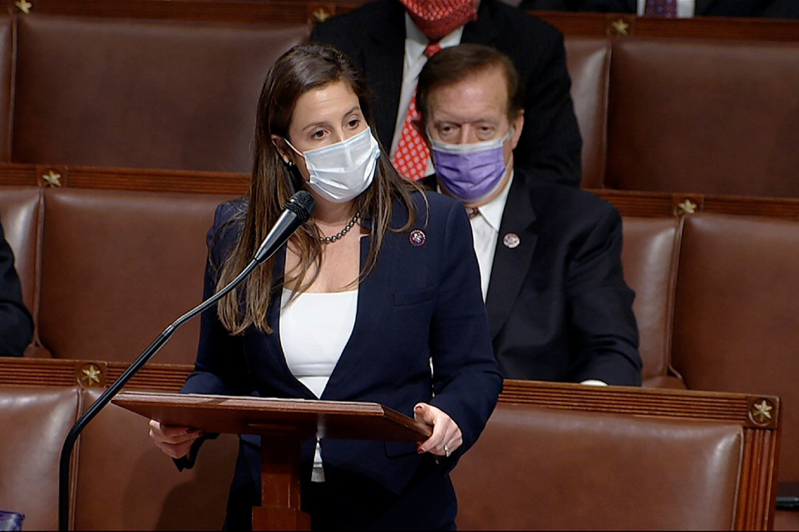 “Elise has made public assertions about voter fraud in November’s presidential election that have no basis in evidence, and she has made public statements about court actions related to the election that is incorrect,” Elmendorf said in a statement.